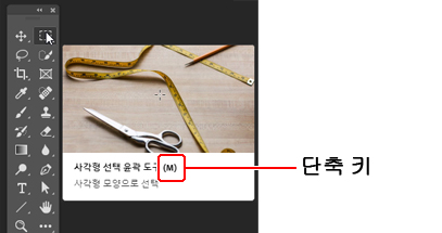 Photoshop에서는 도구를 길게 눌러서도 단축 키를 확인할 수 있습니다.