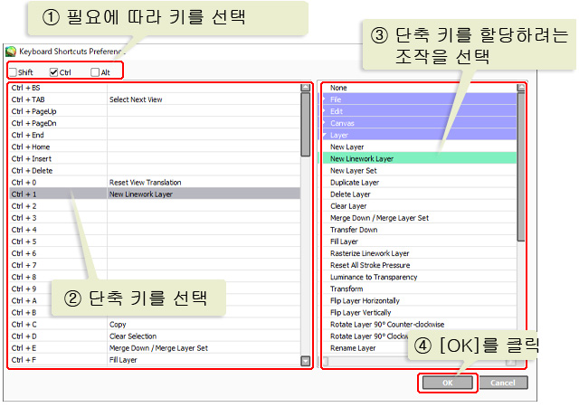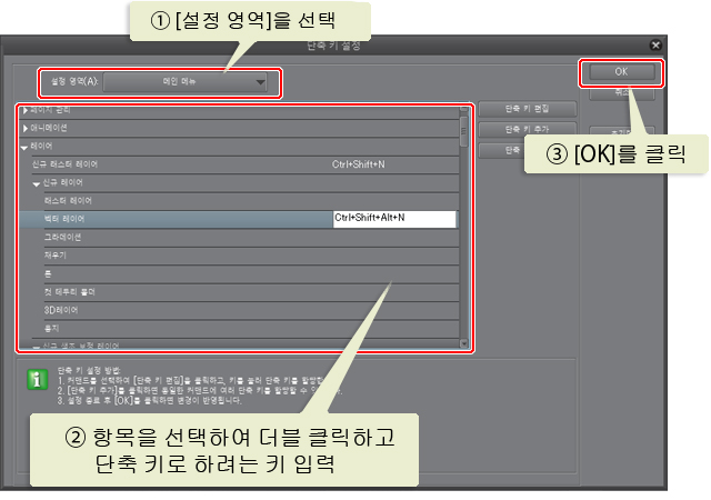 ② 단축 키로 설정하려는 키를 입력하고 [OK]를 클릭
