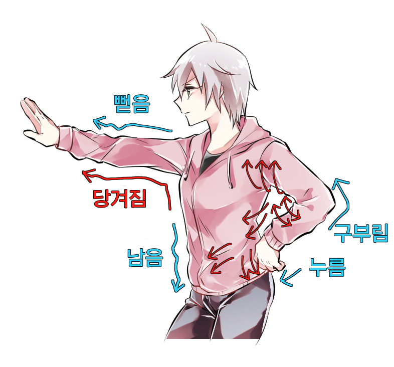 옷이나 주름을 그릴 때 캐릭터의 존재감이 살아나 그림이나 만화를 더 재미있게 그릴 수 있게 됩니다.