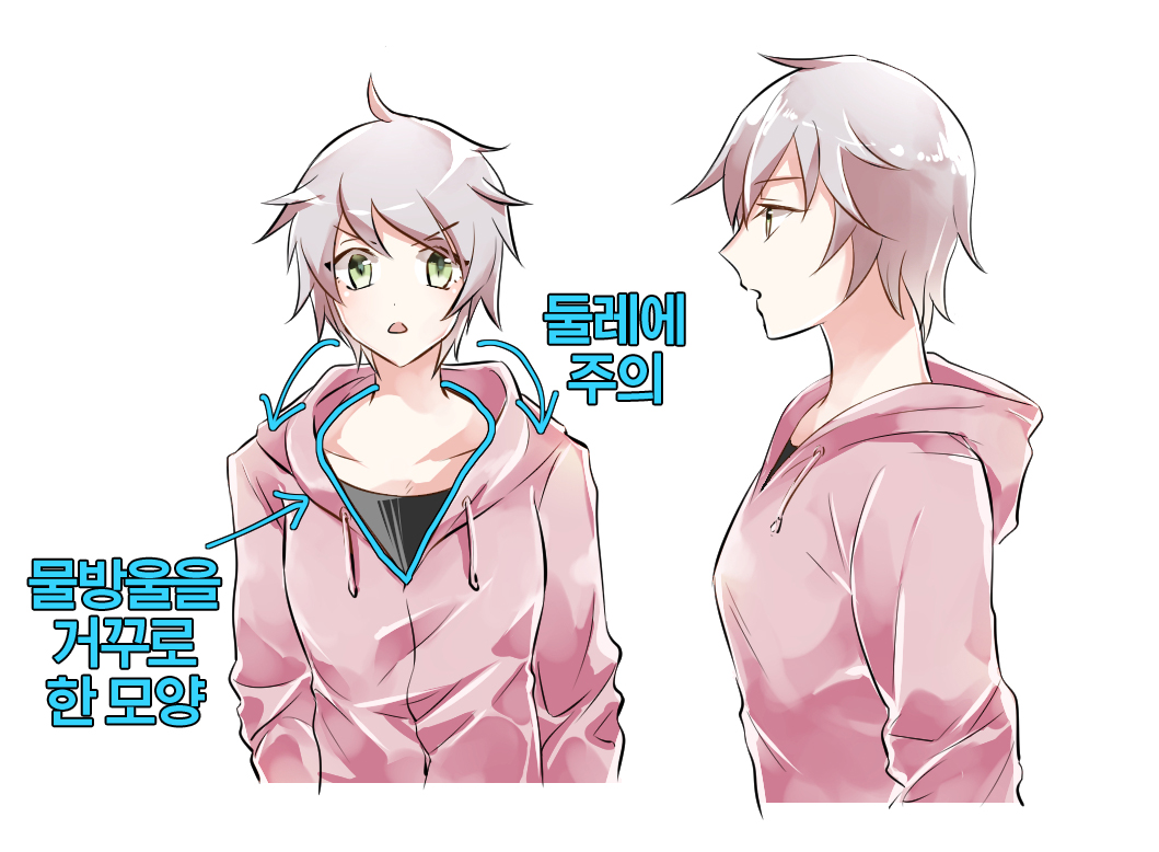 이번에는 후드 티와 후드를 예로 그리는 법을 설명합니다.