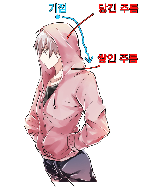 옷을 그릴 때 고민되는 것이 주름을 그리는 법입니다.