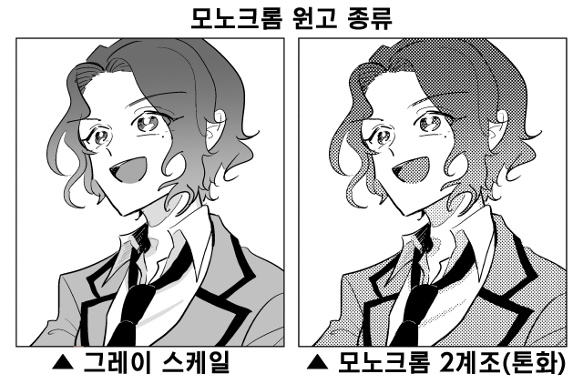 흑백 원고에는 ‘그레이 스케일’ ‘모노크롬 2계조’의 두 종류가 있습니다.