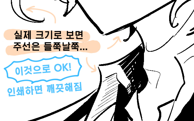 하지만 인쇄용 모노크롬 원고는 ‘주선은 이치화'(안티에일리어싱을 적용하지 않음)가 철칙입니다!