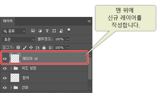 일러스트를 그린 후 신규 레이어를 작성합니다. 작성할 레이어는 맨 위에 배치하세요.