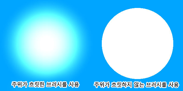 이때 에어브러시 등과 같이 주위가 흐릿한 브러시를 사용합시다. 주위가 흐릿하지 않은 브러시를 사용하면 반짝거리는 효과가 나타나지 않을 수 있습니다.