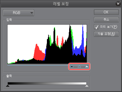 [편집] 메뉴 → [색조 보정] → [레벨 보정]