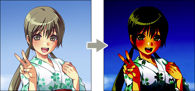 복제한 레이어의 색을 조정합니다. Photoshop/CLIP STUDIO PAINT와 SAI에서는 조정 방법이 다릅니다.