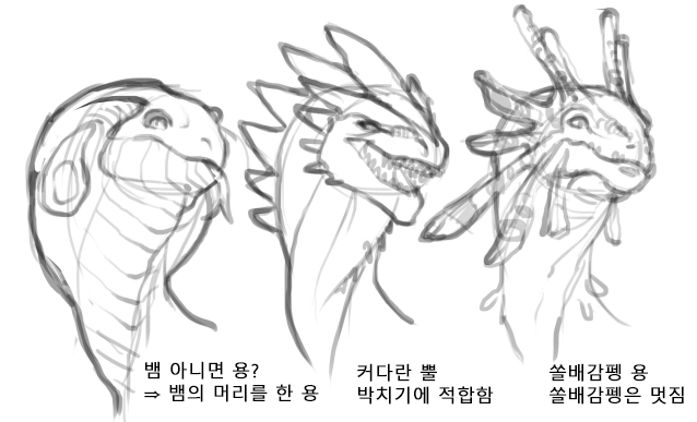 실제 동물의 모습을 떠올리면서 용을 구상해 갑시다.