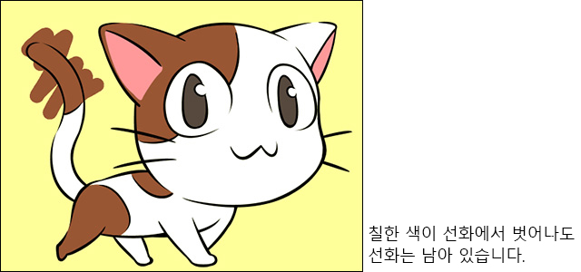 덜 칠한 부분을 칠할 때 선화 위에 칠해도 선화는 그대로 남아 있습니다.
