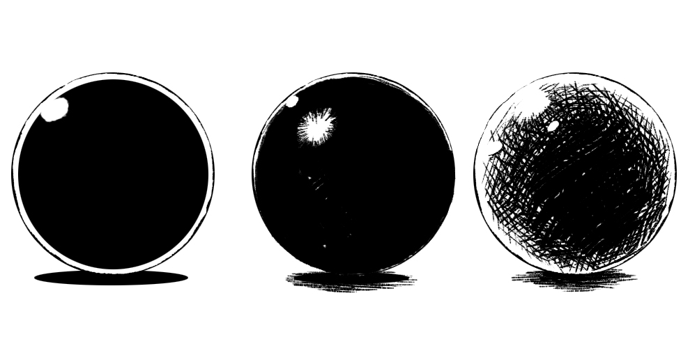 흰색과 검은색만으로 질감을 전달한다는 의미로는 데생과 비슷할지도 모릅니다.