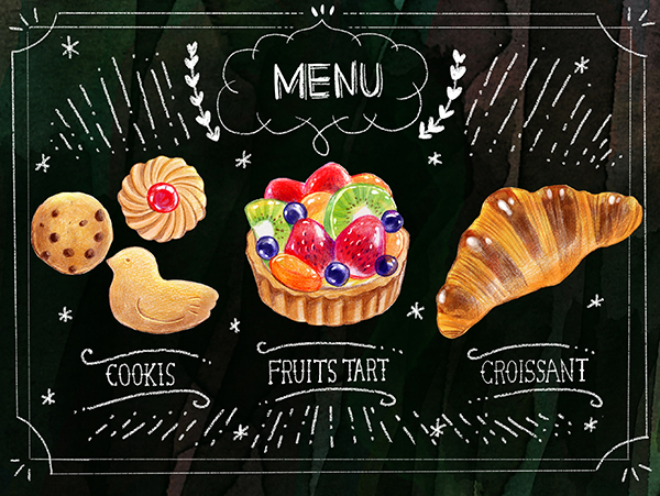 이번에는 칠판을 배경으로 초크 아트풍 일러스트를 그렸는데요, 배경과 배치를 바꿔 같은 과자 데이터를 사용하여 다른 일러스트로 재구성하는 것도 가능합니다.