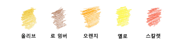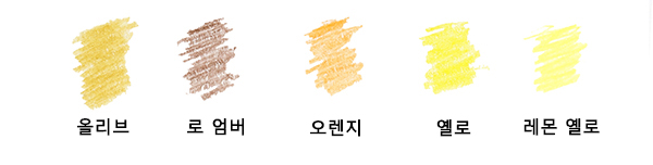 필압을 올려 밝은 부분을 올리브, 옐로, 레몬 옐로로 칠하고 그림자가 되는 부분을 로 엄버로 칠해 마무리합니다.