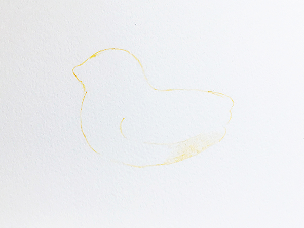 모양을 강하게 나타내기 위해 다시 윤곽과 눈, 날개의 선을 필압을 올려 로 엄버로 칠합니다.