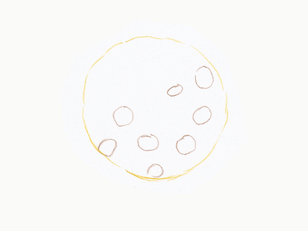 쿠키의 윤곽을 올리브, 초코 부분의 윤곽을 로 엄버로 그립니다.