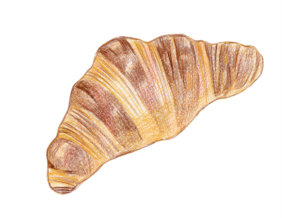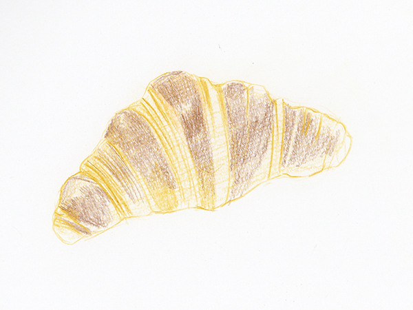 도화지의 결을 살려 칠함으로써 크로와상의 질감을 낼 수 있습니다.