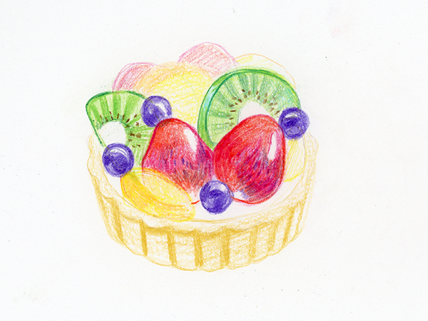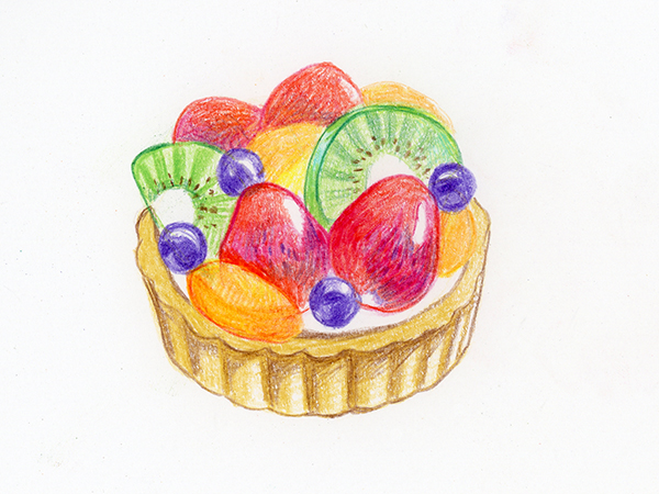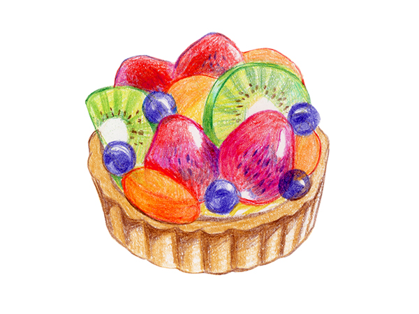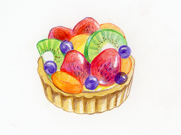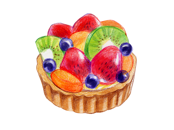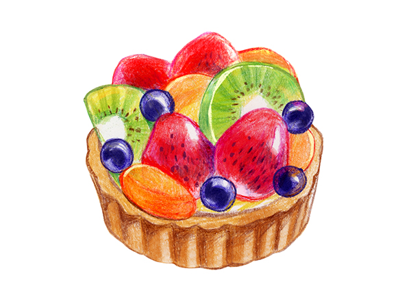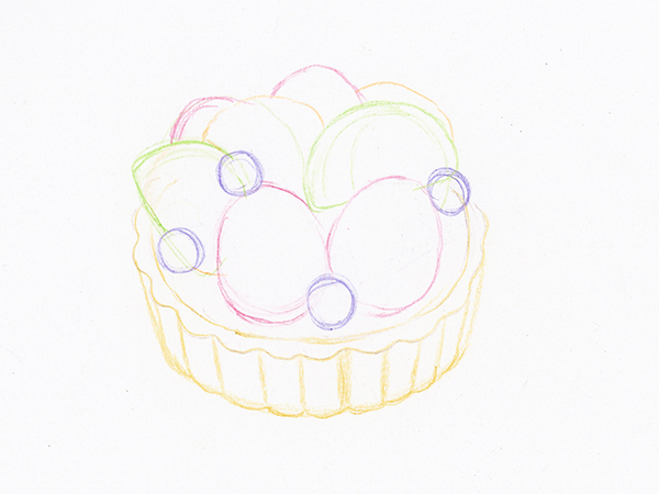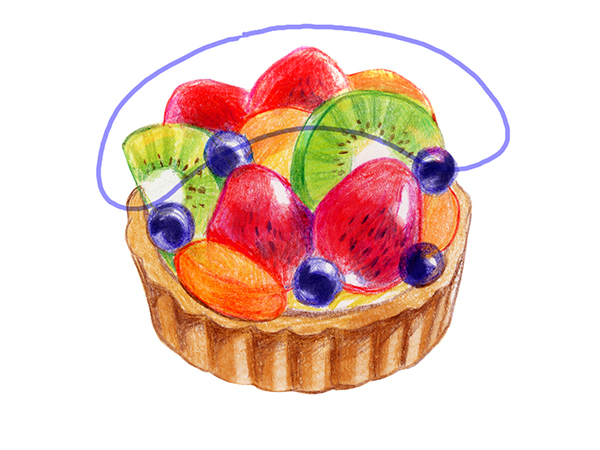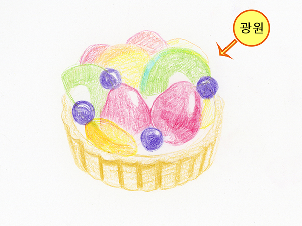 타르트 부분은 올리브, 딸기는 카민, 블루베리는 바이올렛, 키위는 옐로 그린, 황도는 오렌지로 선을 그립니다.