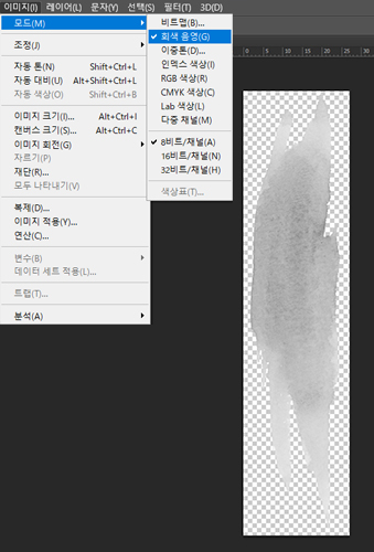 [이미지] → [모드] → [회색 음영]을 선택하여 그레이 스케일로 변환합니다.