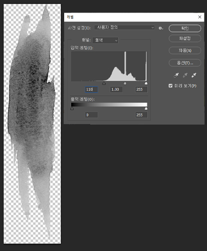 [이미지] → [조정] → [레벨]에서 대비를 조정합니다.