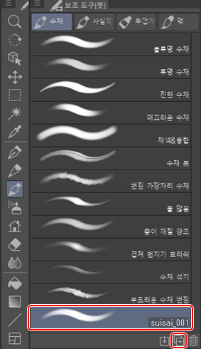 [붓] 도구 → [수채] 그룹의 [투명 수채] 보조 도구를 복제하여 이름을 정합니다.