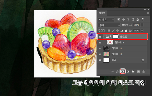 그룹에 대해 마스크를 적용하면 그룹 안의 모든 레이어에 마스크가 적용됩니다.