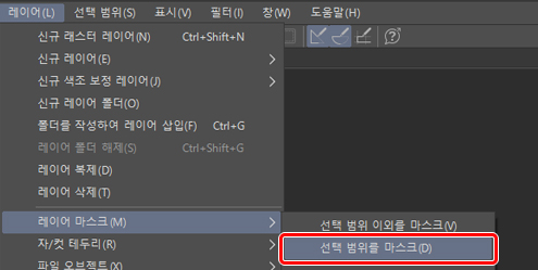 레이어 폴더를 선택한 상태로 [레이어] 메뉴 → [레이어 마스크] → [선택 범위를 마스크]로 마스크를 작성합니다.