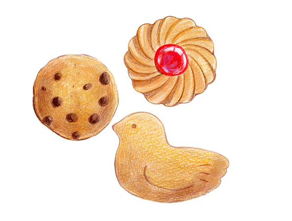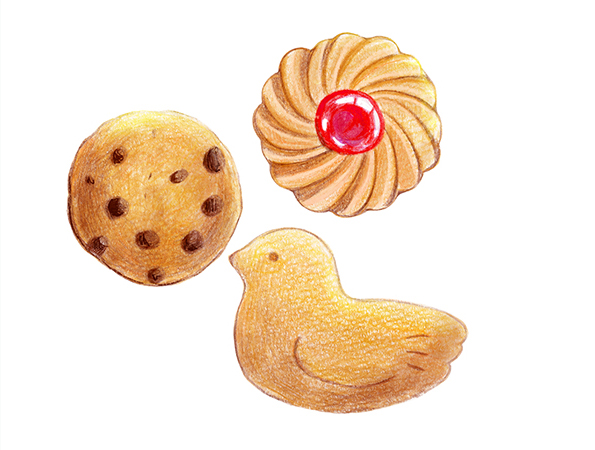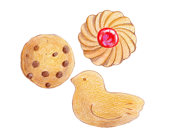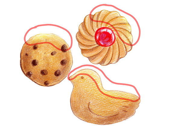 아날로그 과정에서는 색연필만으로 과자의 소재를 그렸습니다.