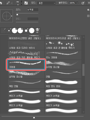 브러시는 쿠키와 마찬가지로 Photoshop 기본 브러시인 크레용 브러시를 사용했습니다.