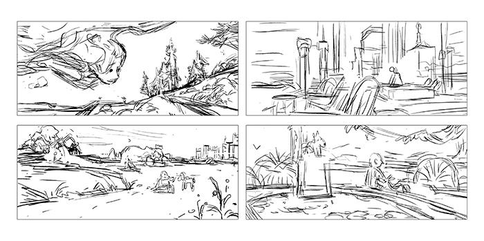 이 과정이 비주얼 디벨롭먼트 중 가장 즐거운 부분이라고 생각합니다. 여기에서 소개하는 방법을 참고로 여러분이 이야기가 있는 그림을 그려 준다면 좋겠습니다.