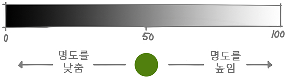 “명도를 바꿀 때는 색의 온도(색상)도 바꿀 것”