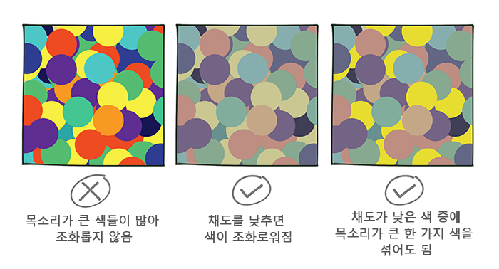 이 세 요소를 활용하면 다양한 배색을 끝없이 만들어 낼 수 있을 것만 같습니다. 정말 그럴까요?