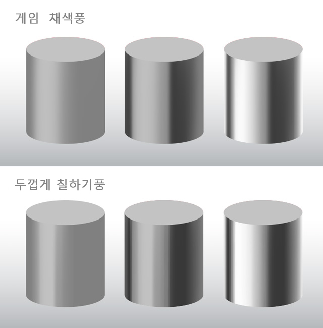 애니메이션 채색으로 정육면체의 금속을 칠하기 어려운 이유도 마찬가지입니다.