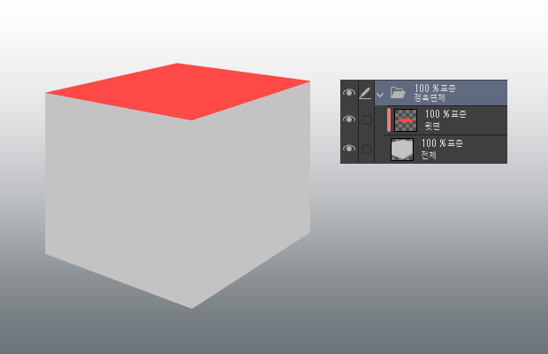 각 면의 그림자와 하이라이트를 칠하기 쉽게 여기에서는 윗면만 다른 레이어로 합니다.