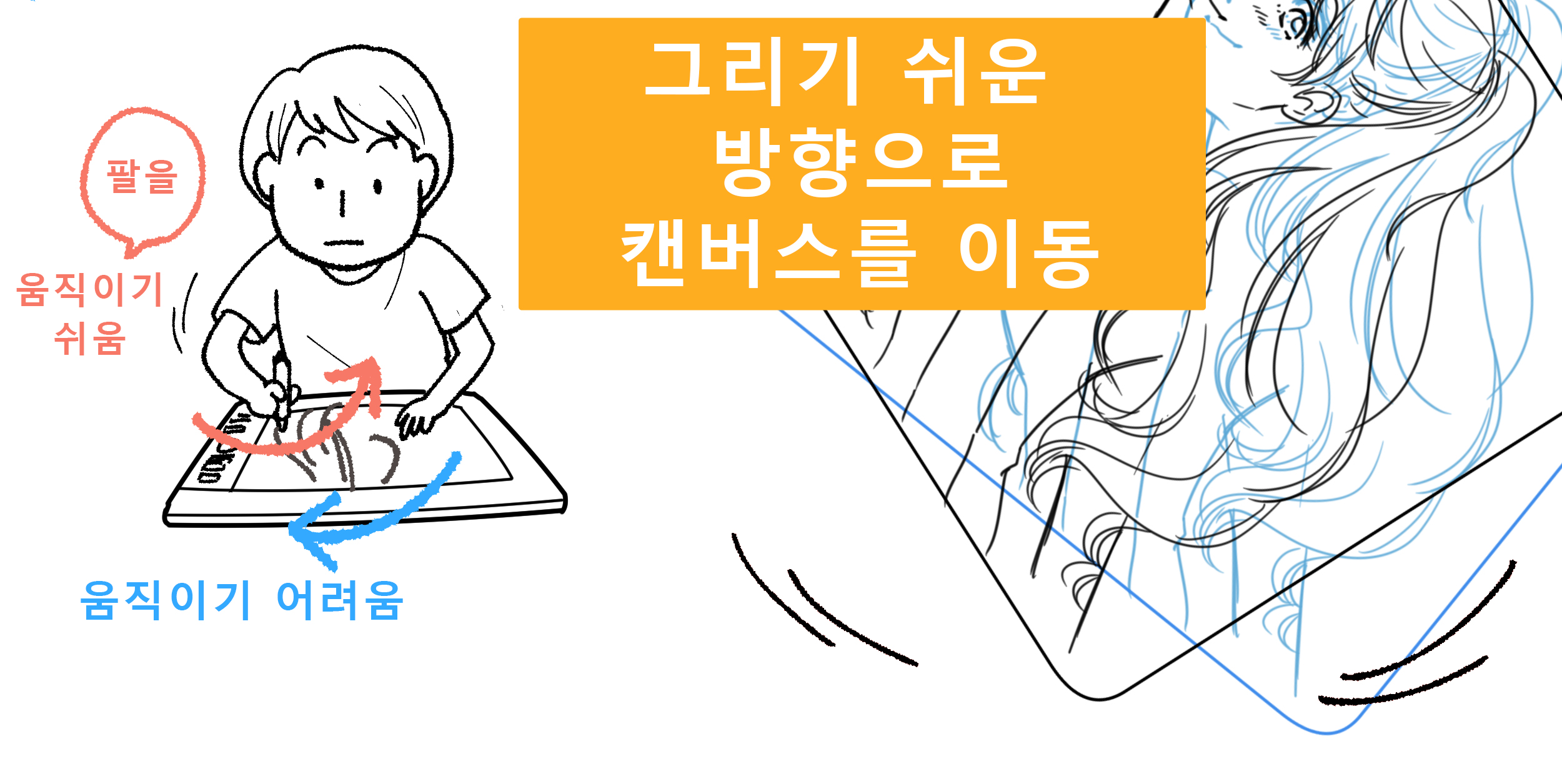 모든 선을 그릴 때 해당하는 말이지만 팔이 움직이기 쉬운 방향이 펜 선 따기 쉬운 방향이기도 합니다.
