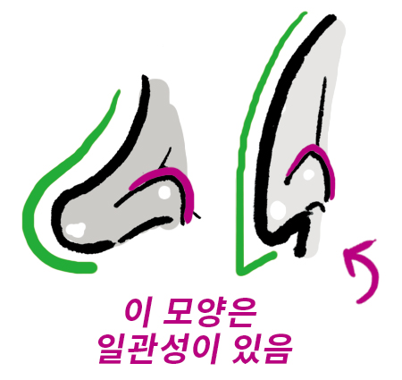 옆얼굴은 코 디자인을 시작할 수 있는 가장 명확하고 쉬운 각도입니다.