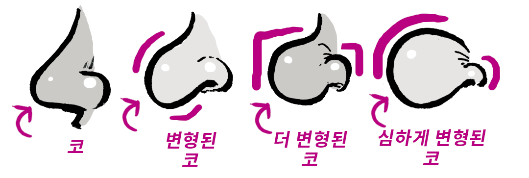 얼굴의 어떤 다른 특징보다 코는 거의 알아볼 수 없을 정도로 변형될 수 있는데 그래도 여전히 ‘코’로 보입니다.