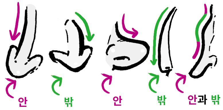 측면에서 ‘L’과 ‘U’를 사용합니다.