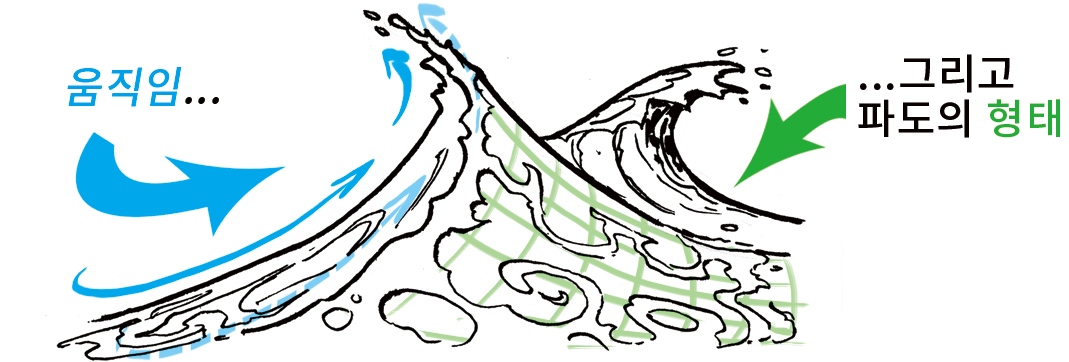 거품선을 사용하여 파도의 움직임과 형태를 설명하세요.