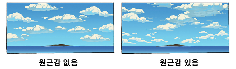 구름을 원근감 있게 배치하는 데 유용한 방법은 다음과 같습니다.