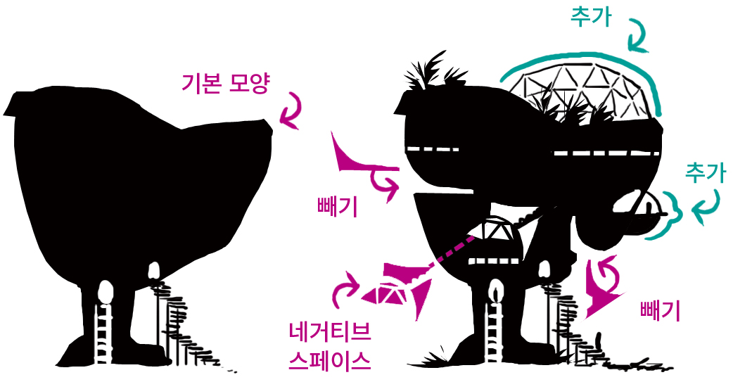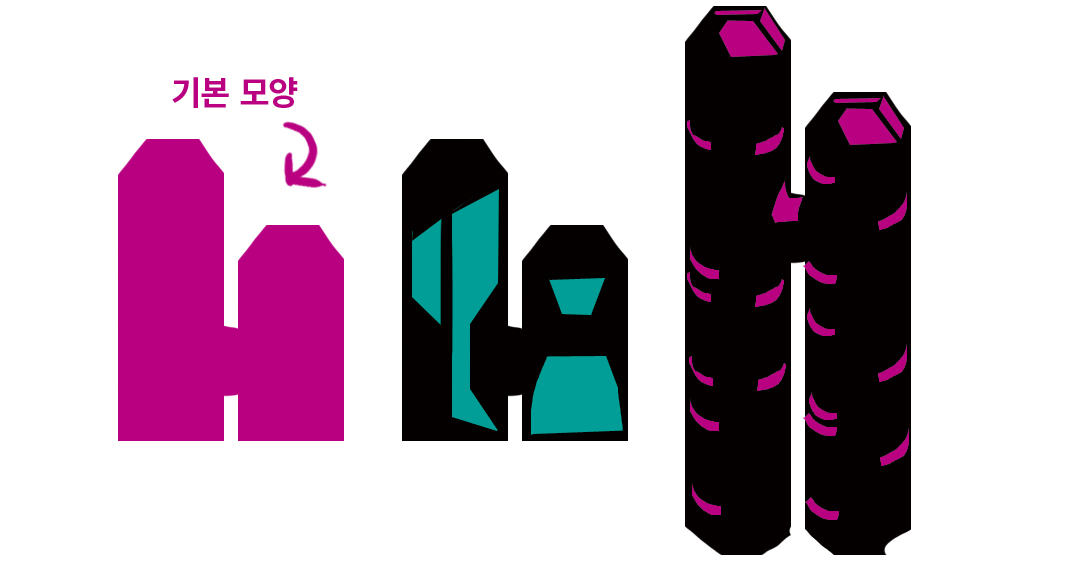 무한한 디자인 변형 아이디어를 떠올리는 데 유용한 기법은 실루엣 섬네일입니다. 실루엣 섬네일은 디자인의 전체적인 형태를 설정하고 그것이 적절히 표시되는지를 빠르게 확인하는 방법입니다.