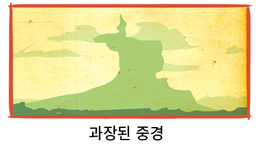 겹겹이 쌓인 평원 구도를 배경으로 산을 추가하면 깊이가 더해지고 전경과 중경의 이중 수평선을 흐트러뜨리며 그 이미지를 눈으로 확인할 수 있습니다.