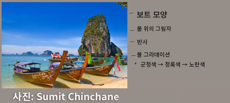이 사진에서 저는 배를 둘러싼 배경보다 훨씬 더 많은 움직임에 끌립니다. 보트 자체뿐만 아니라 부분적으로 반사되는 얕은 물에 그림자가 드리워집니다. 또한 그 바닷물의 컬러 그라데이션을 좋아합니다. 제 목록의 모든 것이 보트를 둘러싸고 있기 때문에 실제로 프레임 내에서 구성할 필요조차 없습니다. 보트의 일반적인 부분을 분리해서 그림을 그리고 어떻게 변해가는지 확인할 수 있습니다.