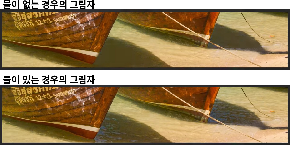 하지만 항상 그런 것은 아닙니다. 예를 들어 이 다리는 물 위에 그림자를 드리우고 있지만, 그 그림자는 반사되어 없어집니다. 사례별로 파악해야 합니다.