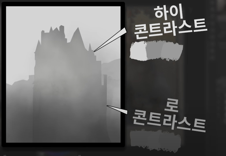 안개를 칠한 뒤의 일반적인 구조에 대해 빨리 설명하고 싶습니다. 이처럼 선명한 실루엣으로 구분하여 그릴 수도 있지만 안개로 가릴 때 기본 구조를 염두에 둡니다.