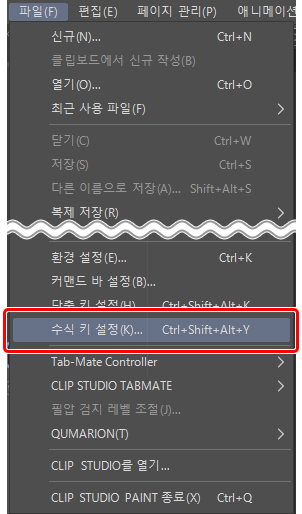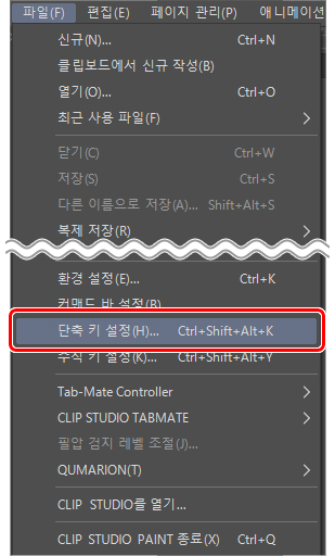 투명색과 마찬가지로 파일 > 단축 키 설정으로 이동합니다.