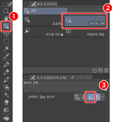 - 보조 도구 팔레트에서 레이어 선택을 선택합니다.