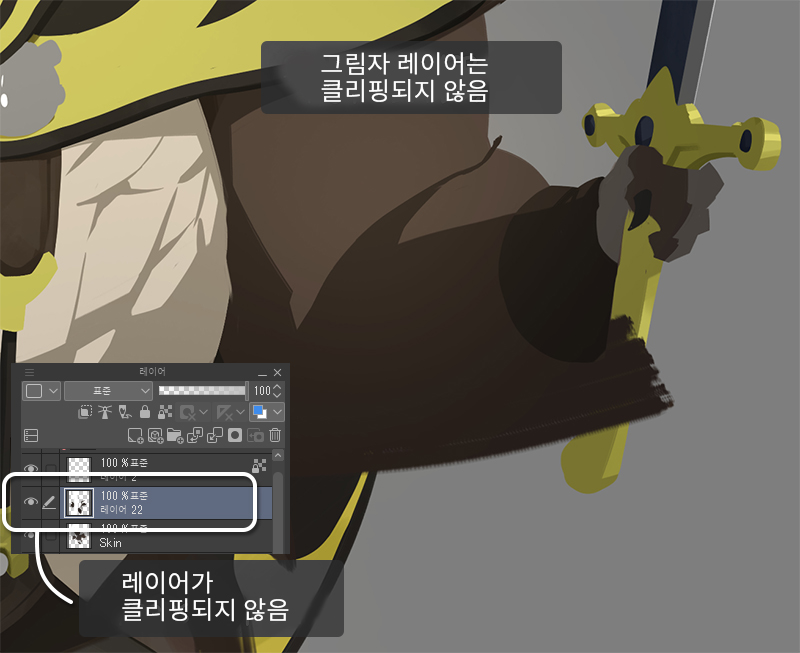 - 모양에 클리핑할 그림자용 새 레이어를 만듭니다. 그림자 레이어를 클리핑하면 모든 스트로크가 그 아래의 레이어 모양으로 유지됩니다.