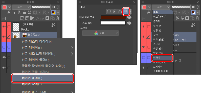 다음으로 레이어를 복제합니다(마우스 오른쪽 버튼 클릭 > 레이어 복제), # 481C08(주조색) 및 # FFF5DA(보조색) 적용). 마지막으로 레이어 합성 모드를 더하기로 설정합니다.