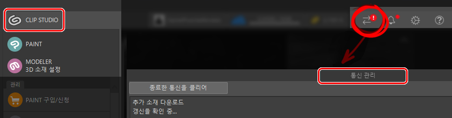 CLIP STUDIO 창이 자동으로 열립니다. 로그인하면(로그인하지 않았다면 로그인해야 함) 통신 관리 화면에 알림이 나타나고 3D 소재가 성공적으로 다운로드되었음을 확인할 수 있습니다.