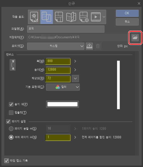 - 저는 주로 72dpi로 웹툰 작업을 합니다.