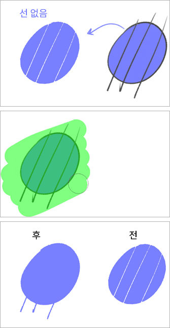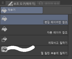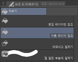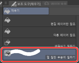 - 채워진 영역에 공백이 있는 경우: 일반 브러시처럼 작동하는 ‘덜 칠한 부분에 칠하기’를 사용합니다.